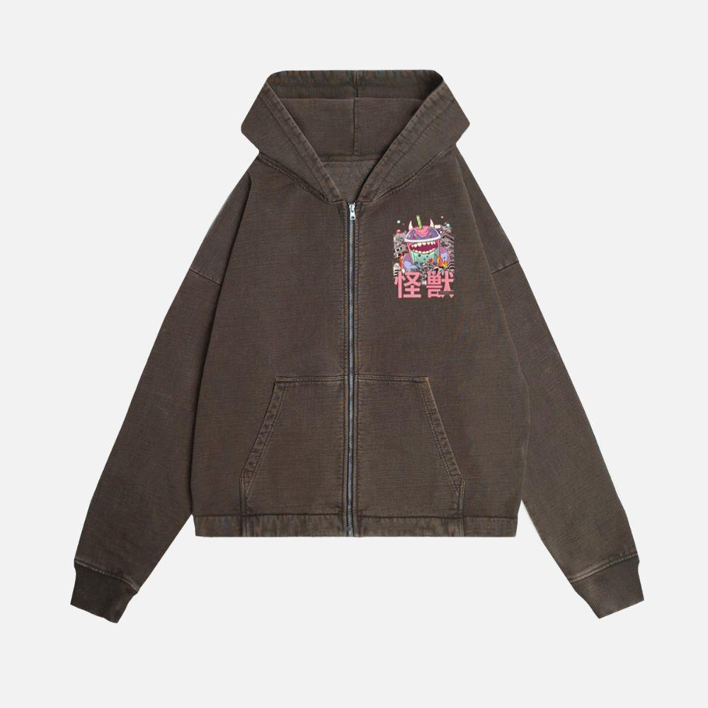Kaiju Capybara Japanese Anime Monster Zip Hoodie