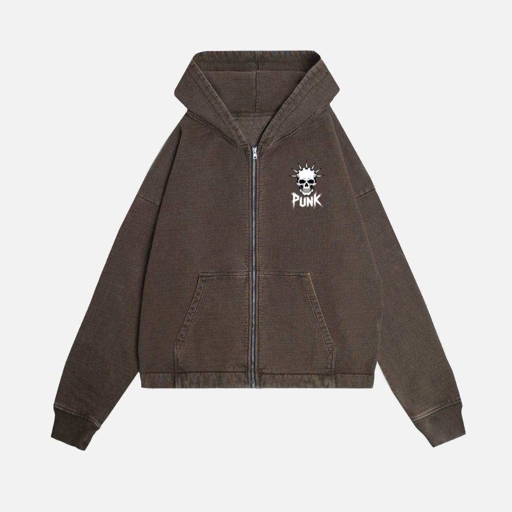 Punk Skull Spikes Retro Graphic Zip Hoodie