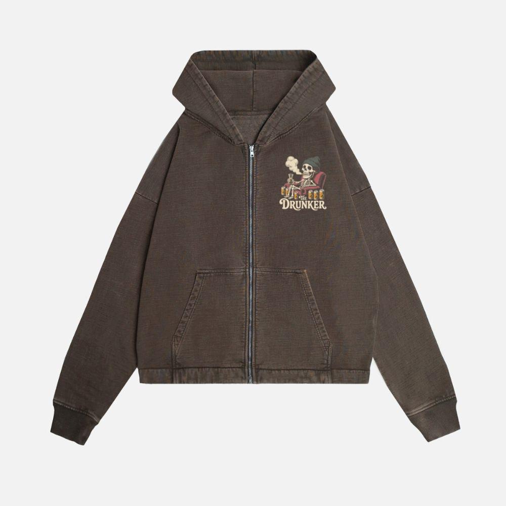 The Drunker Skeleton Beer Mug Design Zip Hoodie